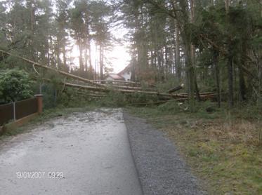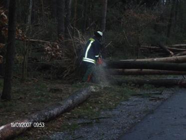 Mehrere Bäume auf Straße gekippt.