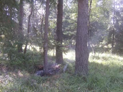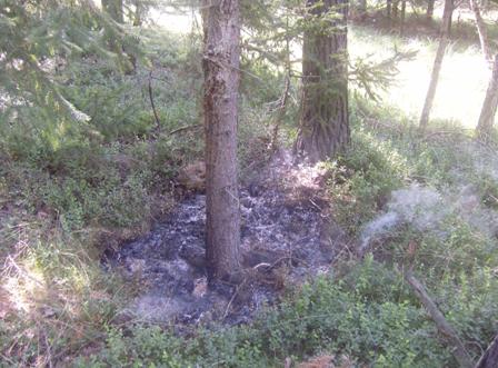 Nach Blitzschlag Waldbodenbrand auf einer Fläche von 1m² und 30cm tief. .