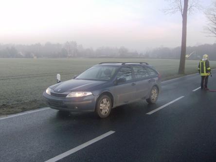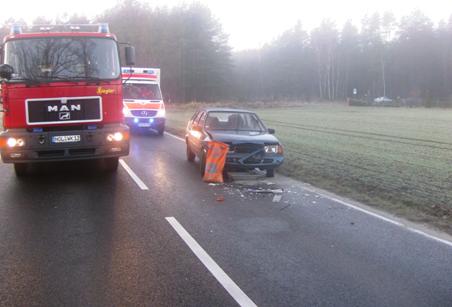 Eine Suzuki Fahrerin kam auf der B115, aus Richtung Weißkeißel nach Krauschwitz, auf eisglatter Straße von der Fahrbahn ab,