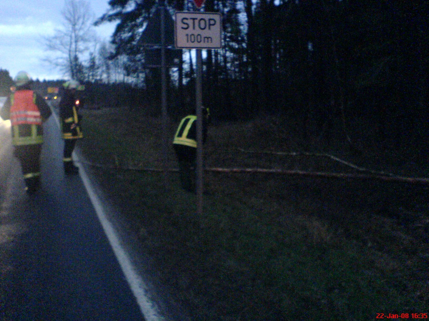 Ein Baum drohte nach starken Wind auf die Straße zukippen.