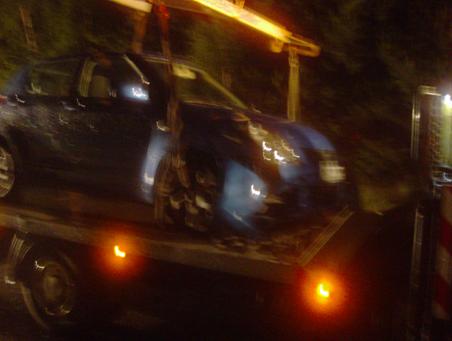 Wie auf der Bundesstraße 115, aber unglücklicher Weise fuhr eine Suzuki Swift - Fahrerin in die Gefahrenstelle und beschädigte ihr Fahrzeug stark.