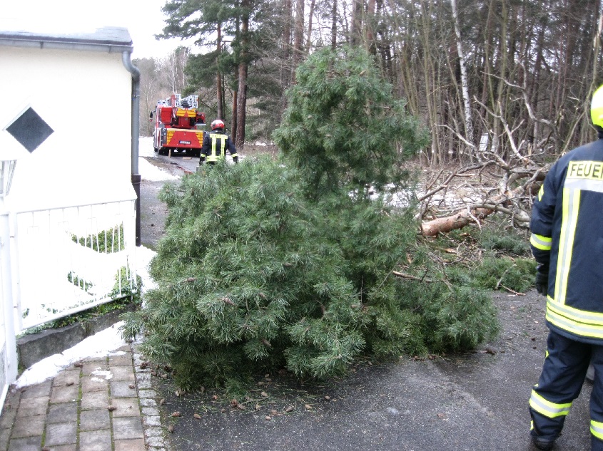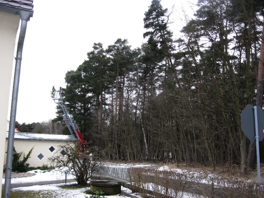 Es drohten 2 grosse Kiefern auf ein Wohnhaus zu stürzen.